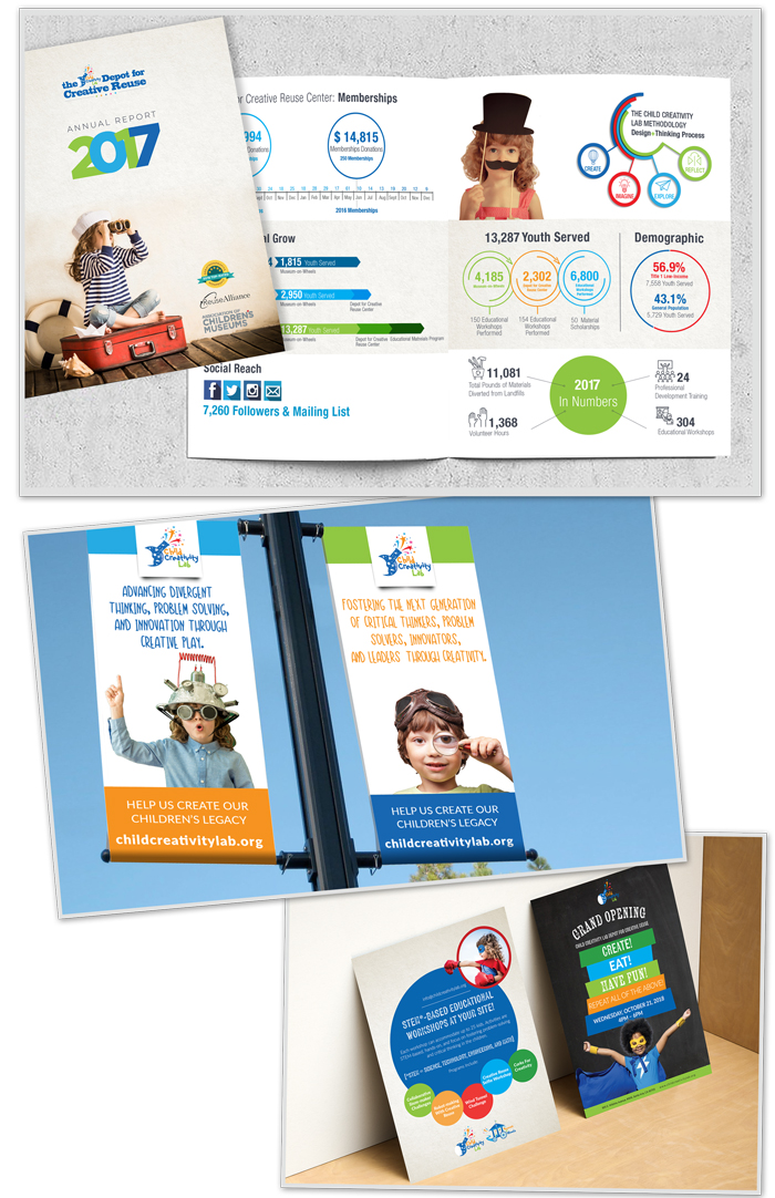 CHILD CREATIVITY LABTHE NEEDChild Creativity Lab, a non-profit, hands-on depot for creative reuse which caters to educators, community organizations, and kids of all ages was just starting up and wanted to spread the word about their mission. THE DESIGN PROCESS